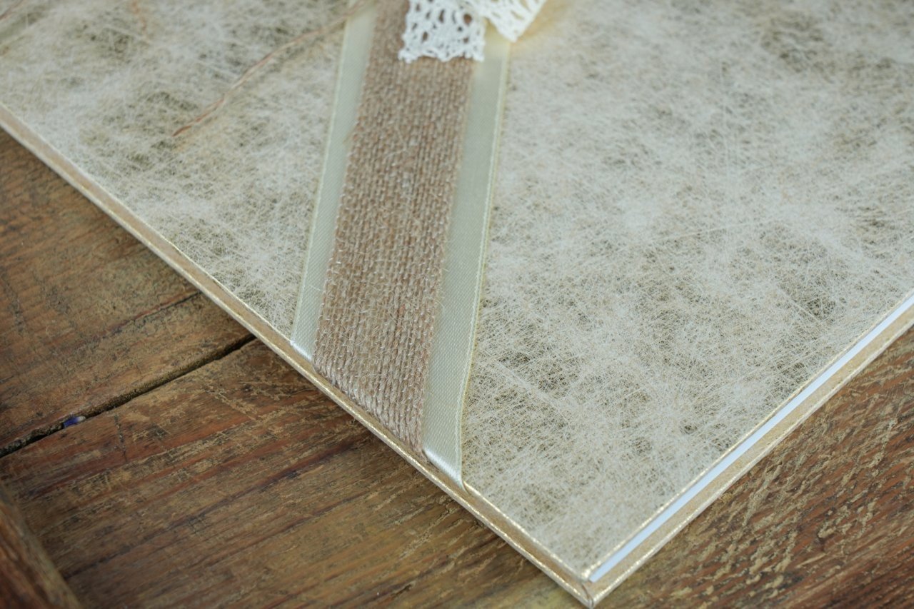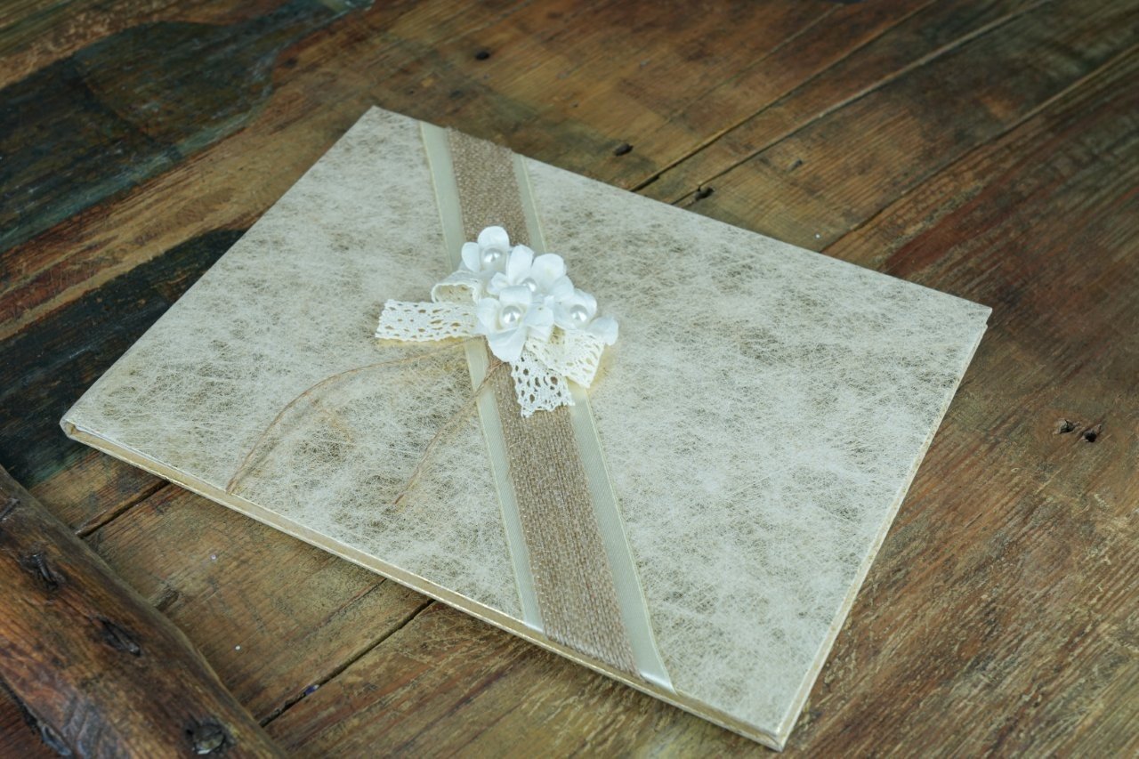 Βιβλίο Ευχών Γάμου Ρουστίκ με Λινάτσα, Δαντέλα & Λουλούδια