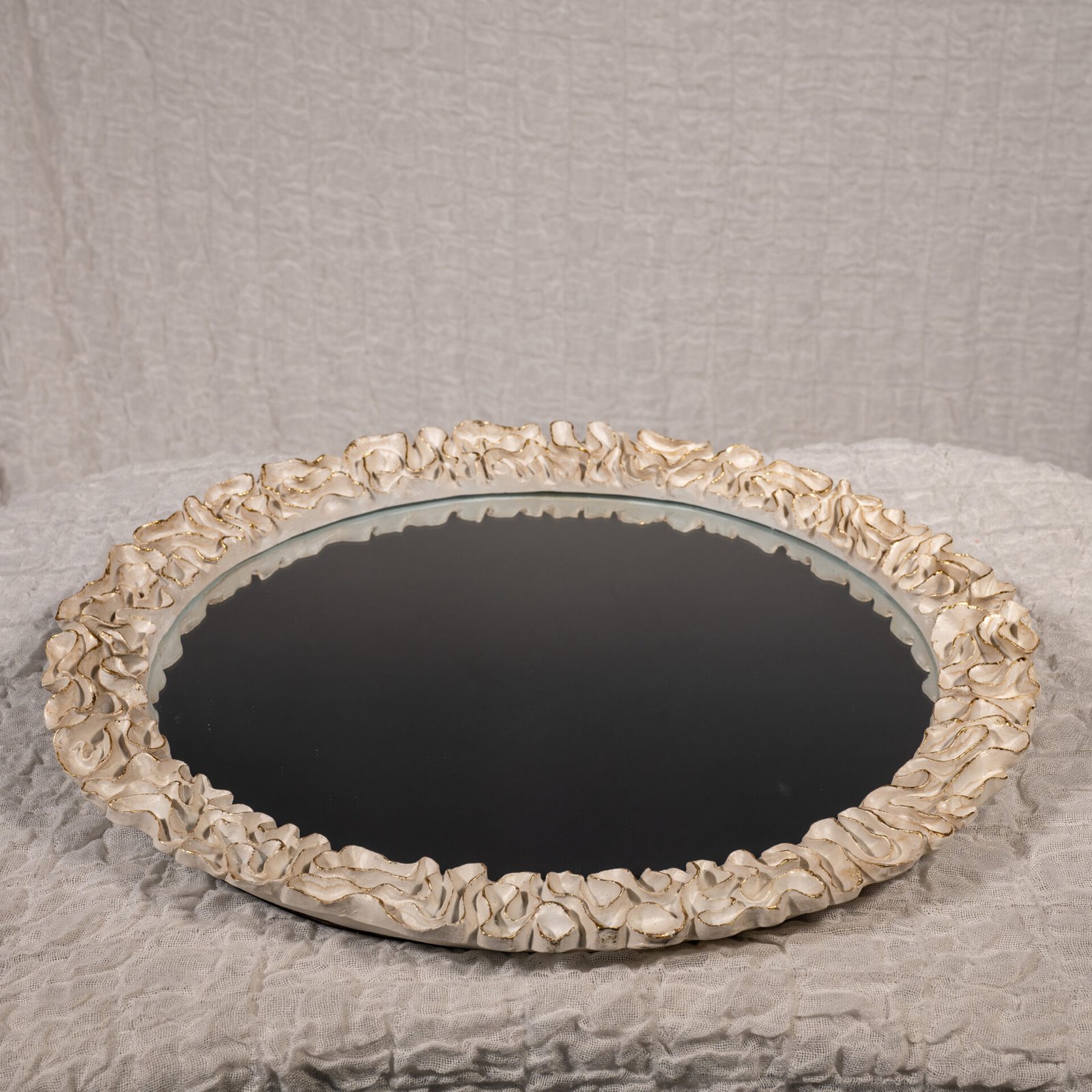 Ρομαντικός δίσκος σε χρυσή απόχρωση, με ιδιαίτερο σχέδιο δαντέλας. Μπορεί να χρησιμοποιηθεί και ως καθρέφτης καθώς διαθέτει γάντζο στο πίσω μέρος.