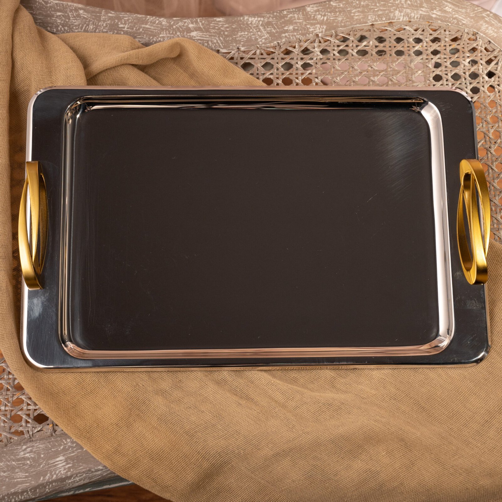 Ο επάργυρος δίσκος με χρυσά χερούλια είναι ένα κομψό και διαχρονικό αντικείμενο που προσδίδει πολυτέλεια σε κάθε περίσταση.