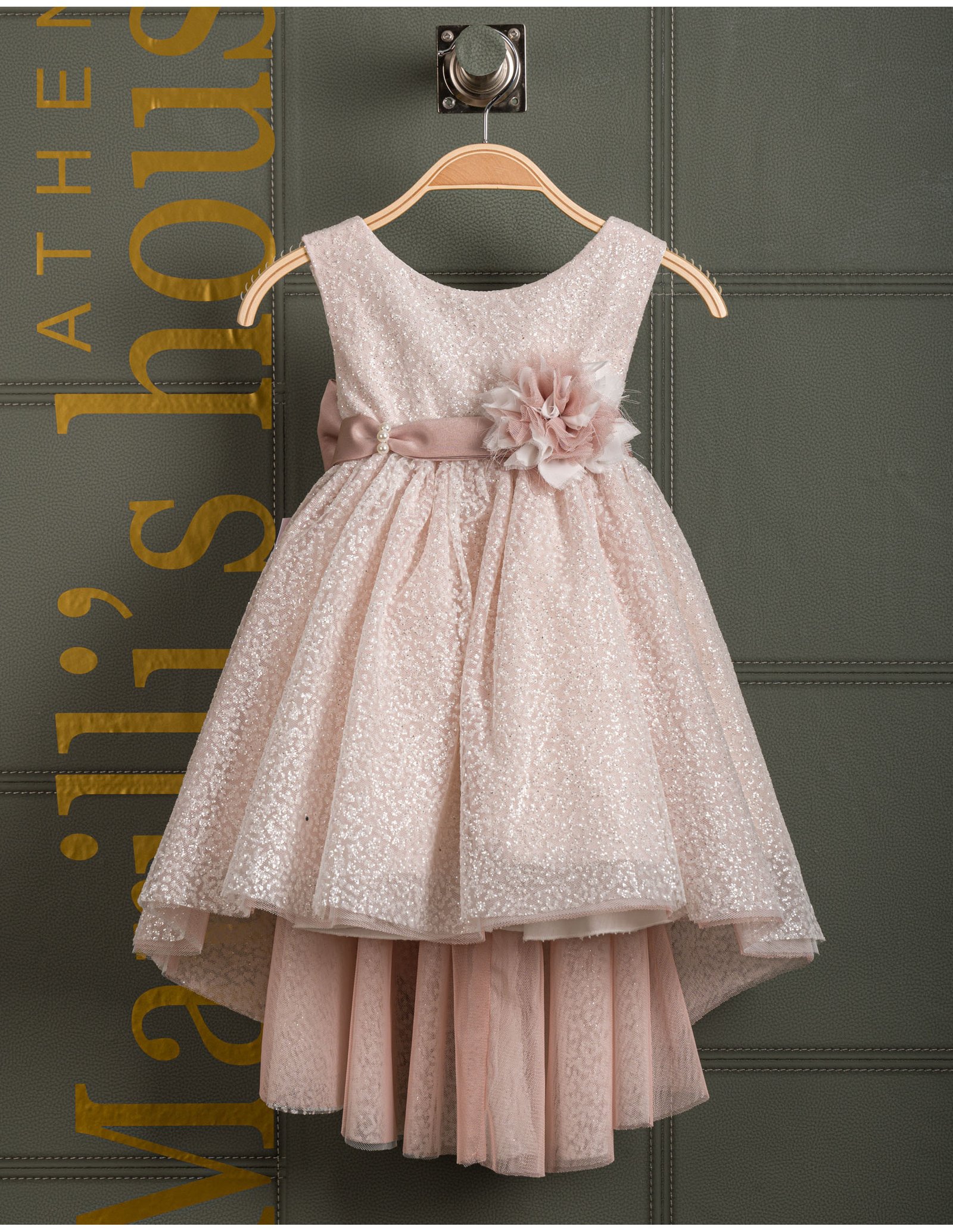 Λαμπερό φόρεμα βάπτισης από Marilli’s House, σχεδιασμένο με πολυτελή υλικά και ρομαντικές λεπτομέρειες. Το φόρεμα διαθέτει: