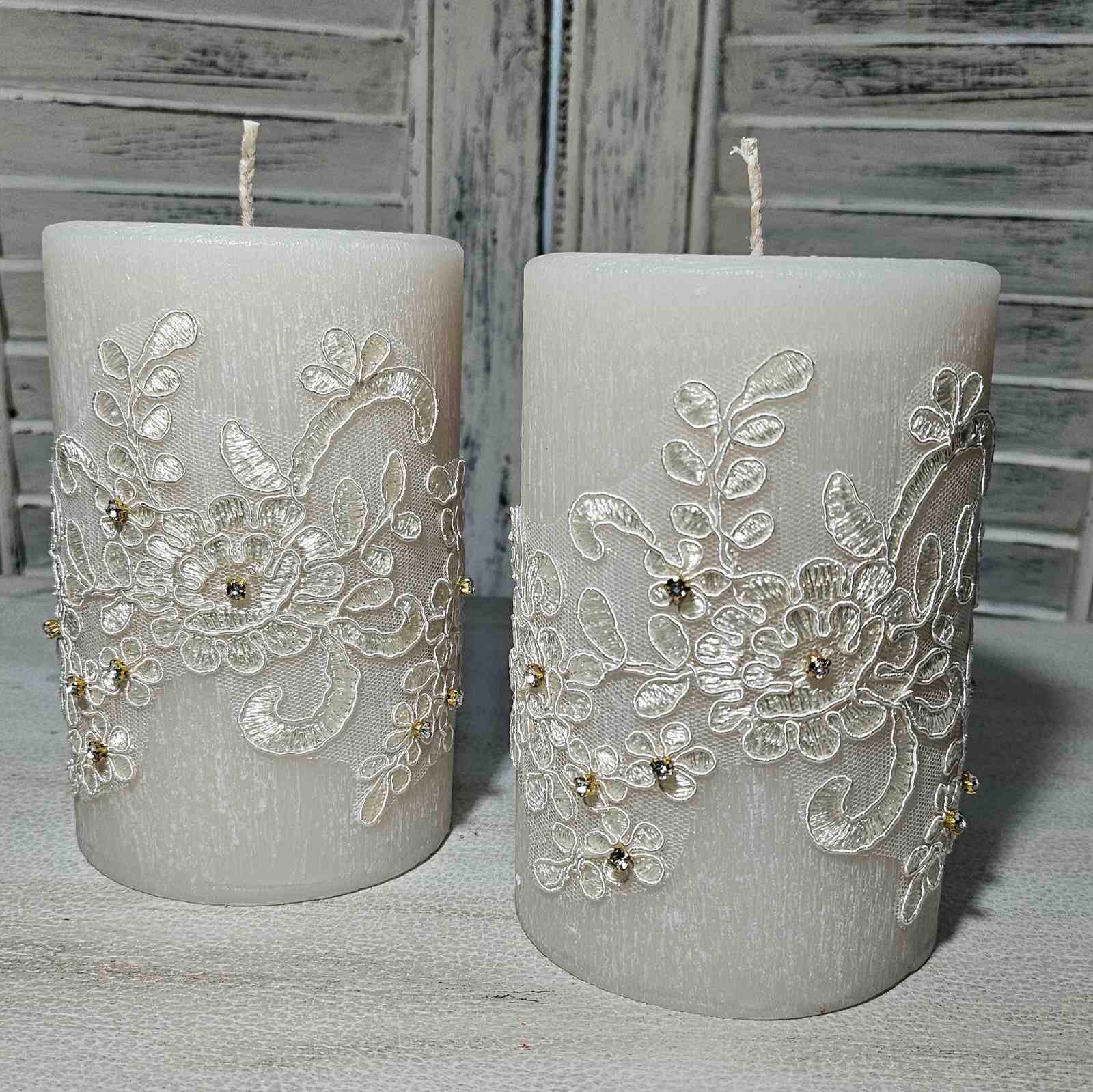 Κεριά Γάμου με Δαντέλα & Χάντρες