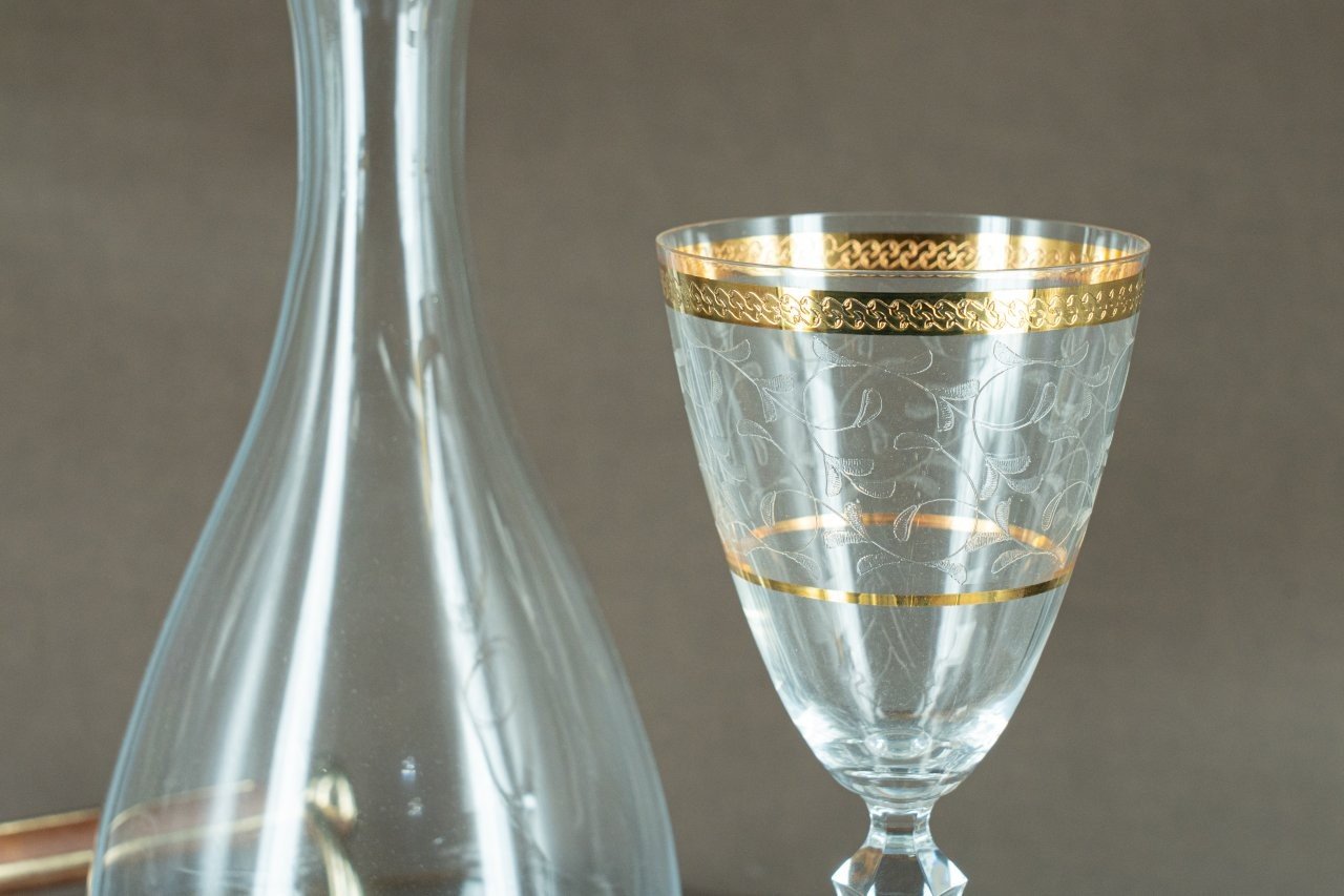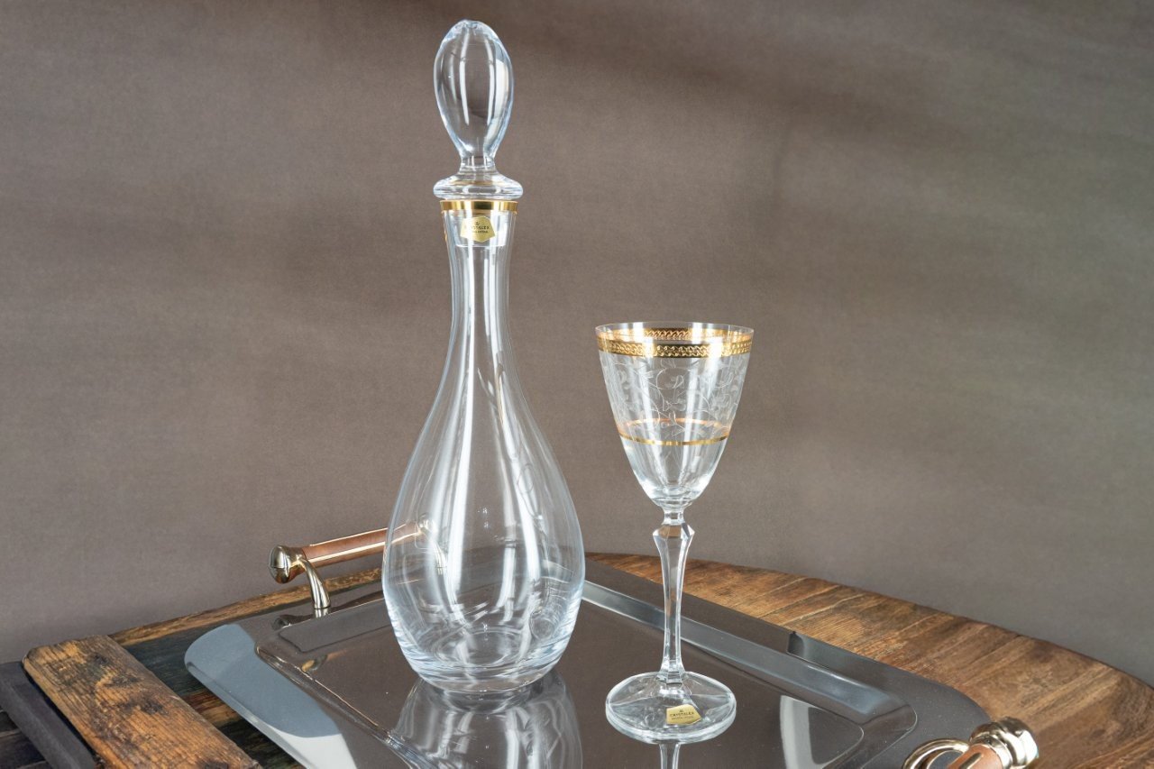 Κλασικό Σετ Γάμου Καράφα, Ποτήρι & Δίσκος με Χρυσό Τελείωμα
