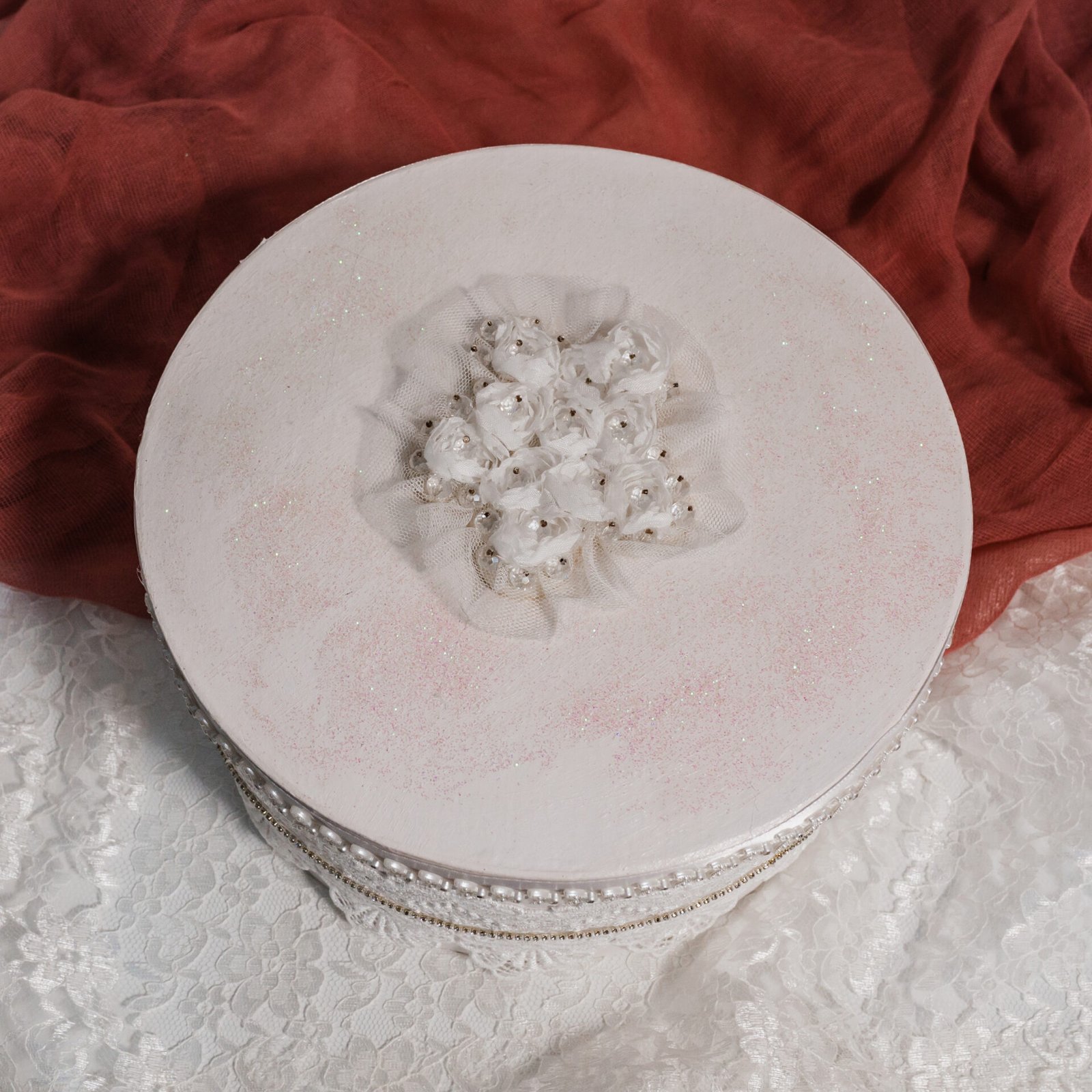 Νυφική Καπελιέρα με Δαντέλα & Σατέν Λεπτομέρειες – Κομψό Κουτί Γάμου