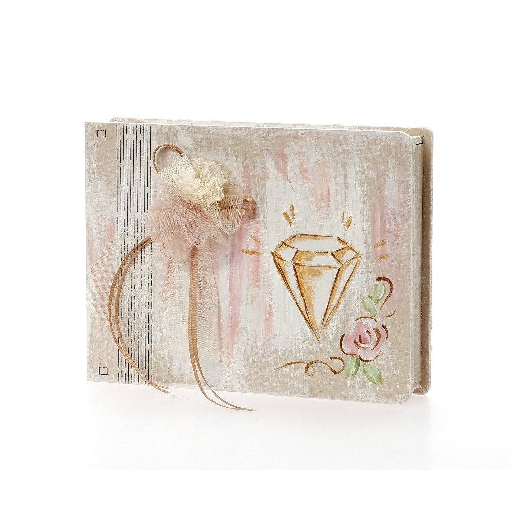 Ξύλινο κουτί μαρτυρικών, διακοσμημένο με τούλι και ζωγραφισμένο διαμάντι. Κομψό και ρομαντικό για τη βάπτιση.