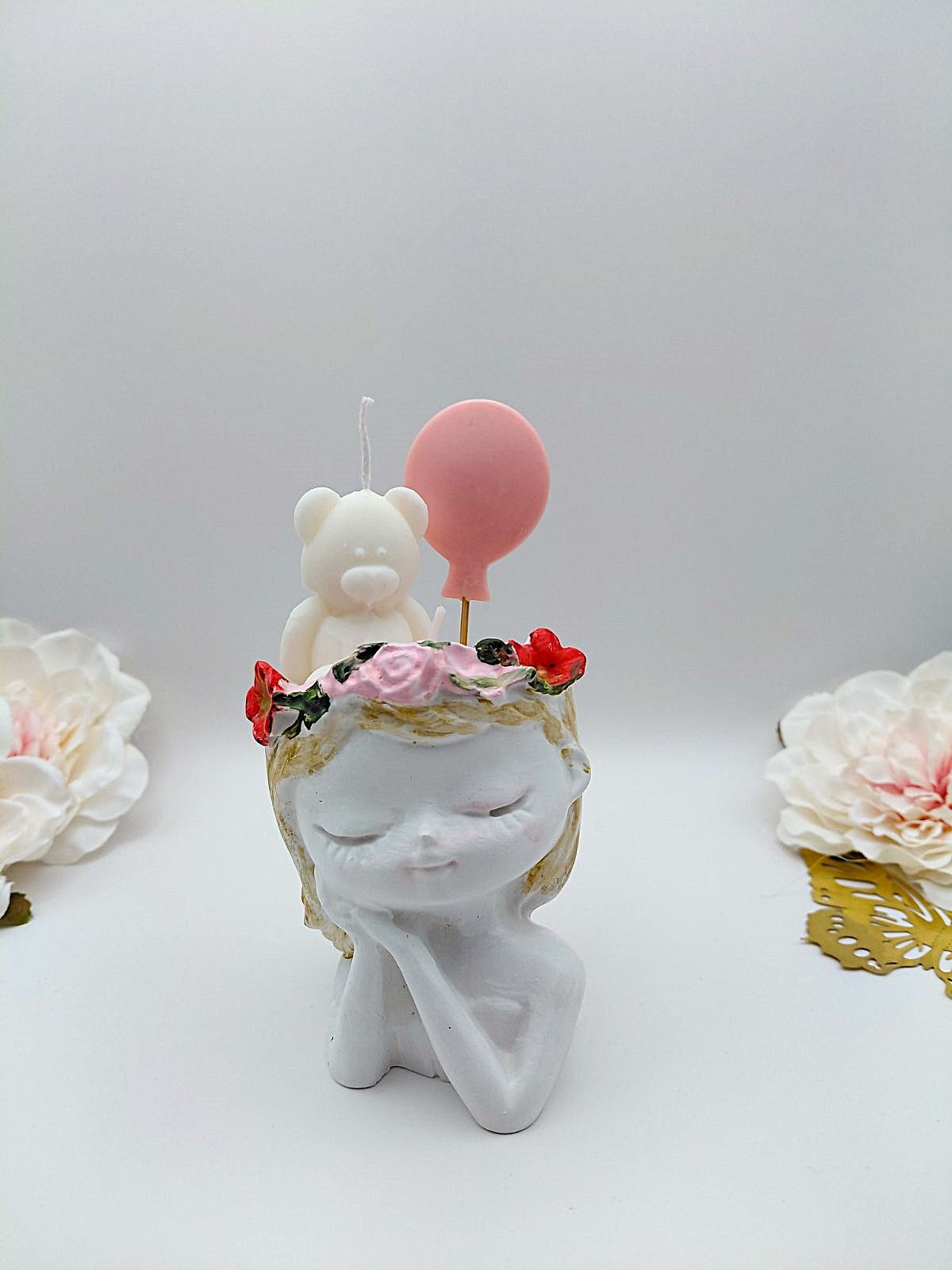 Μια τρυφερή πορσελάνινη σύνθεση με κερένια στοιχεία που χαρίζει ρομαντισμό και γλυκιά αισθητική στη διακόσμηση ή στις μπομπονιέρες.