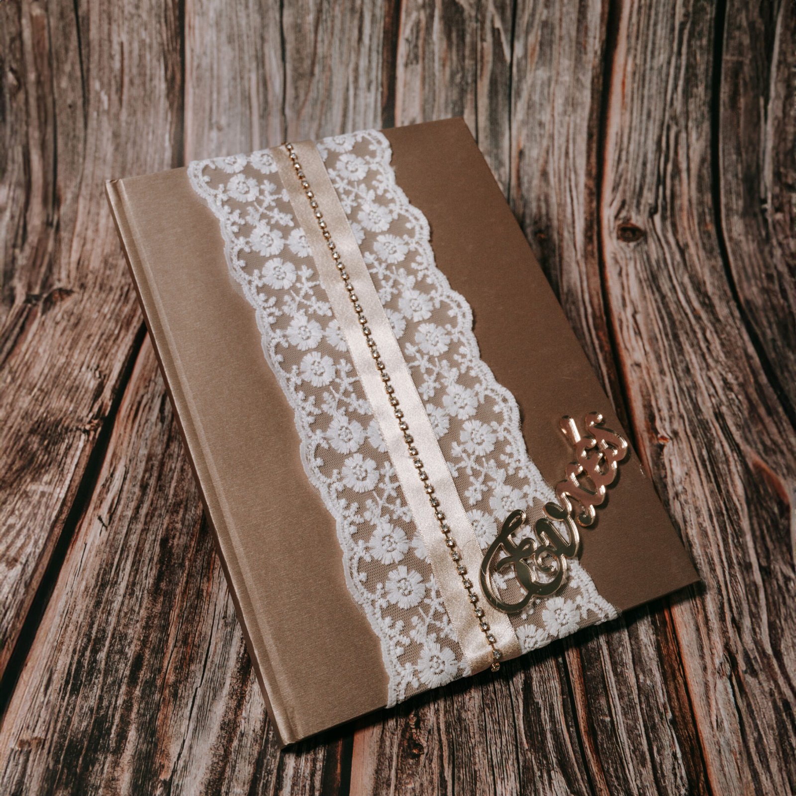 Βιβλίο Ευχών Γάμου με Δαντέλα & Χρυσές Λεπτομέρειες