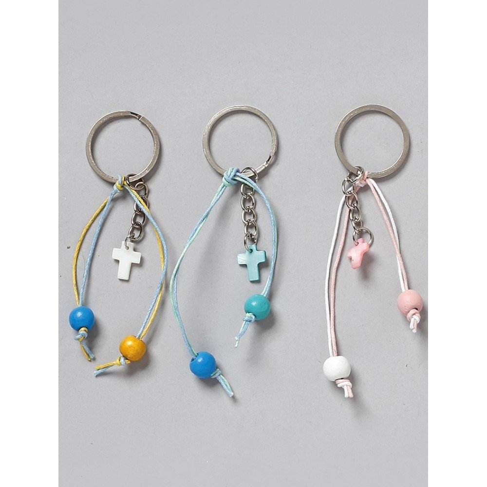 Μαρτυρικά βάπτισης σε μορφή μπρελόκ με σταυρό και χάντρες. Διαθέσιμα σε τρεις χρωματικούς συνδυασμούς (μπλε, γαλάζιο και ροζ), ώστε να ταιριάζουν ιδανικά σε βάπτιση αγοριού ή κοριτσιού.