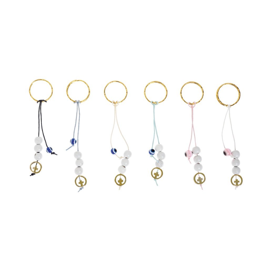 Μπρελόκ Μαρτυρικά Βάπτισης με Χάντρες, Ματάκι & Σταυρό