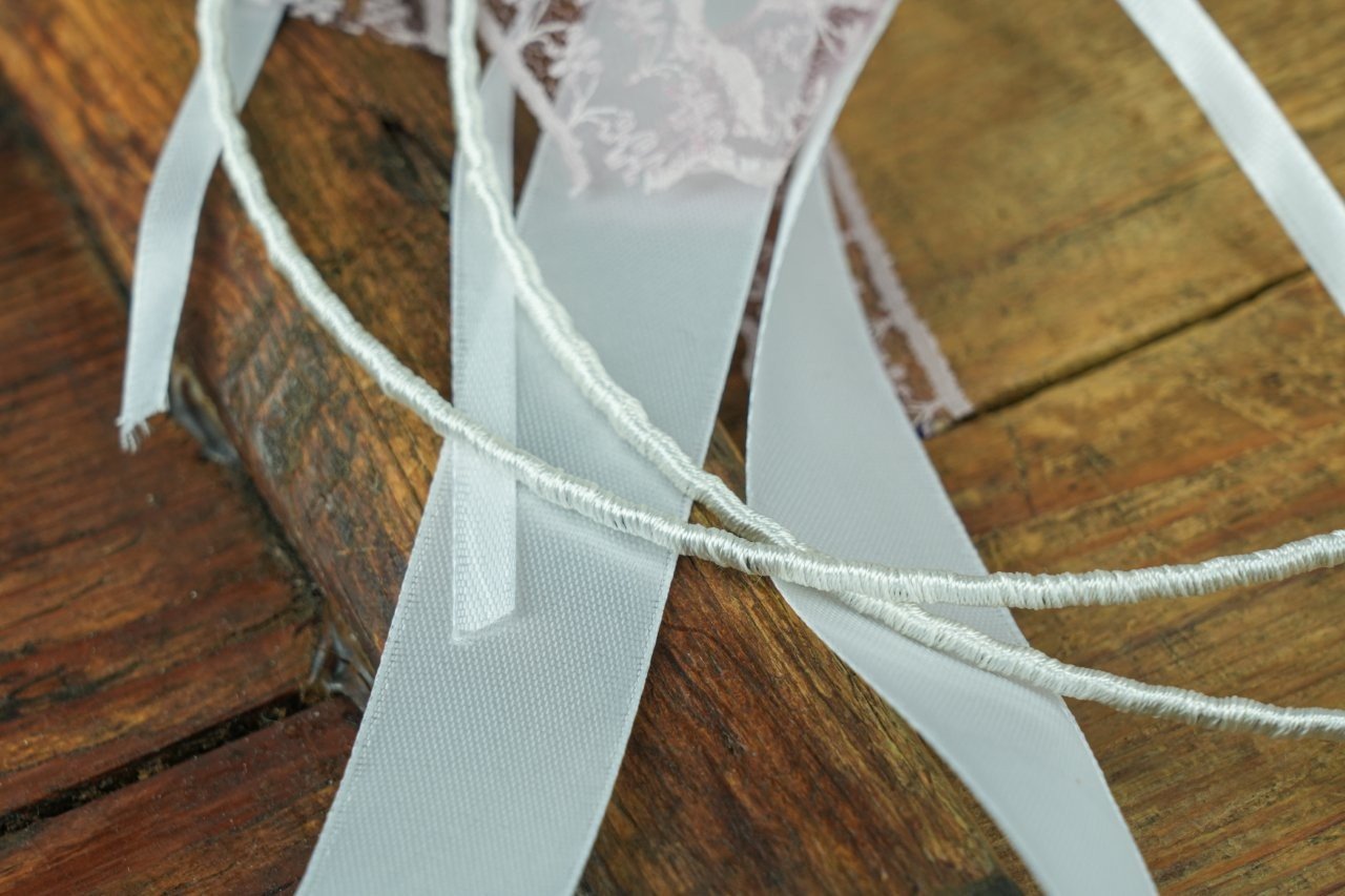 Μεταξωτά στέφανα γάμου, πλεγμένα με μεταξωτό σχοινί, διακοσμημένα στο πίσω μέρος με λιλά δαντέλα, σατέν, λευκή κορδέλα και φυσικά λουλούδια από το κουκούλι του μεταξωσκόλικα σε λιλά χρώμα με φεγγαρόπετρα.