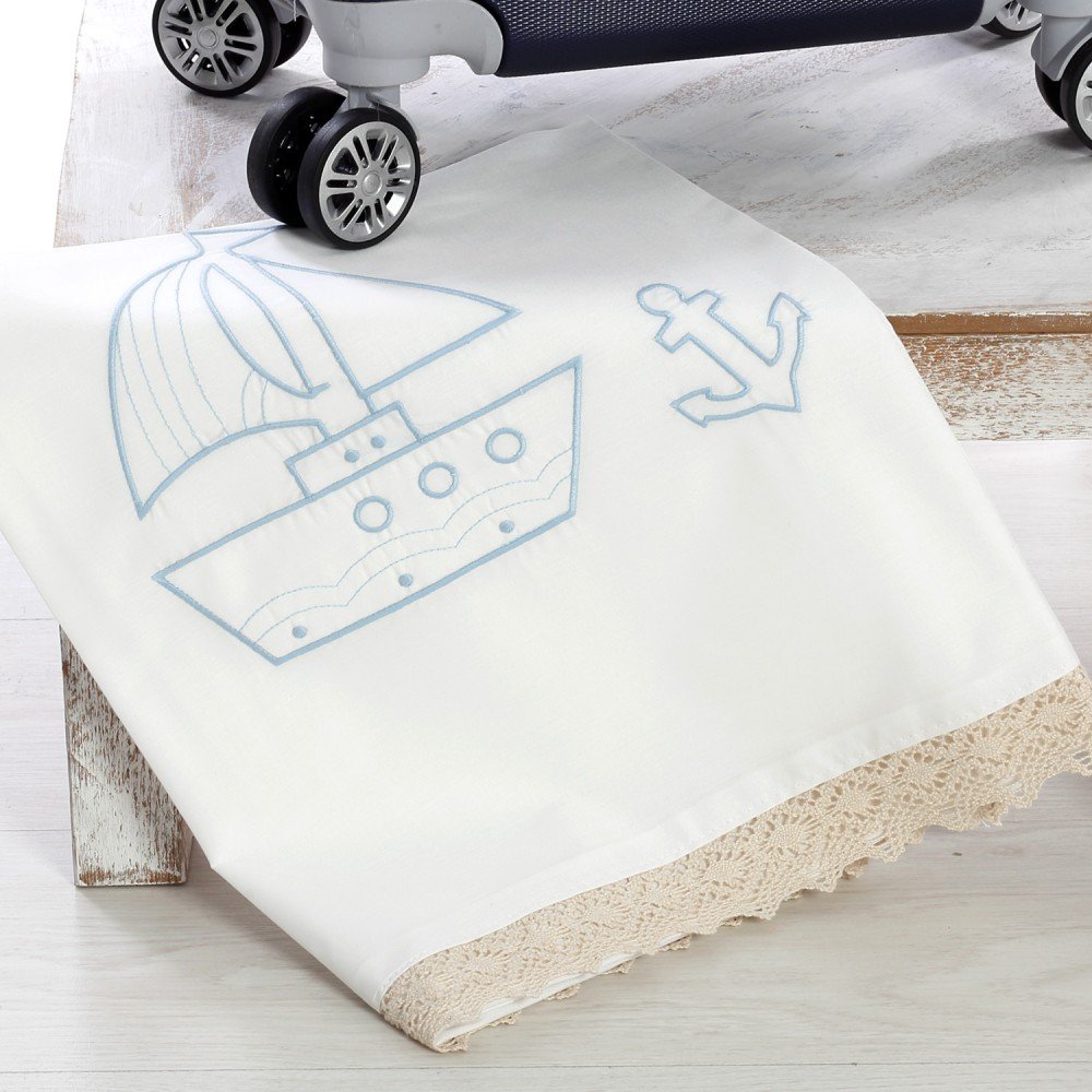 Σετ λαδόπανα με ναυτικά μοτίβα και λεπτομέρειες από φυσικά υλικά.