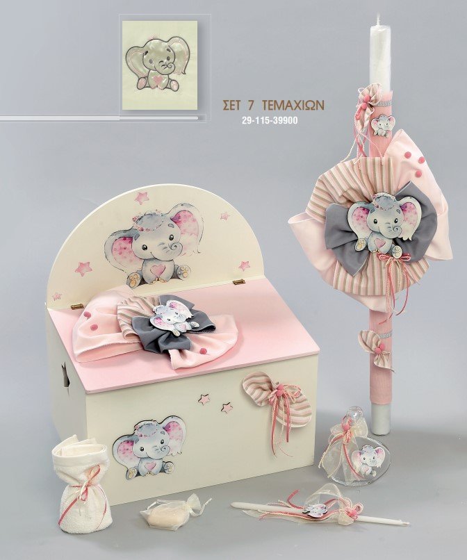 Πακέτο Βάπτισης – Ονειρικό Ελεφαντάκι σε Ροζ & Γκρι