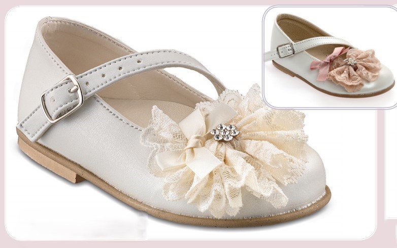 Ένα παπουτσάκι σαν να ξεπήδησε από παραμύθι. Με ρομαντικό φιόγκο, δαντελένιες λεπτομέρειες και διακριτική λάμψη, ταιριάζει τέλεια σε μια παραμυθένια εμφάνιση.