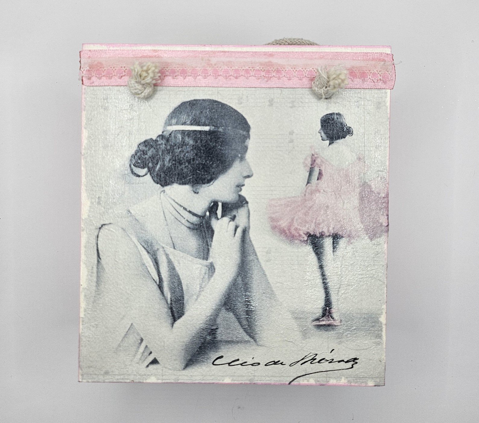 Χειροποίητη πασχαλινή λαμπάδα με ρομαντικό vintage σχέδιο μπαλαρίνας, σετ με χειροποίητο ξύλινο κουτί — ένα κομψό και ξεχωριστό πασχαλινό δώρο.