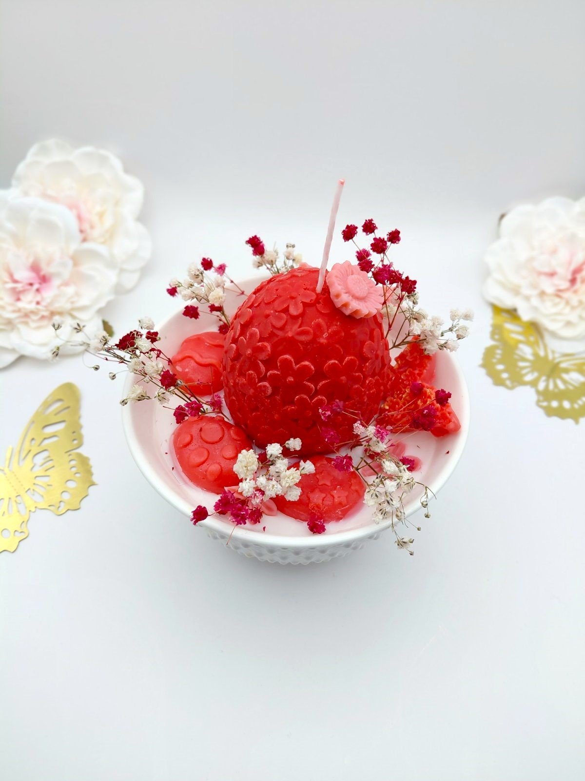Red Elegance – Σύνθεση με Κερί & Αποξηραμένα Λουλούδια