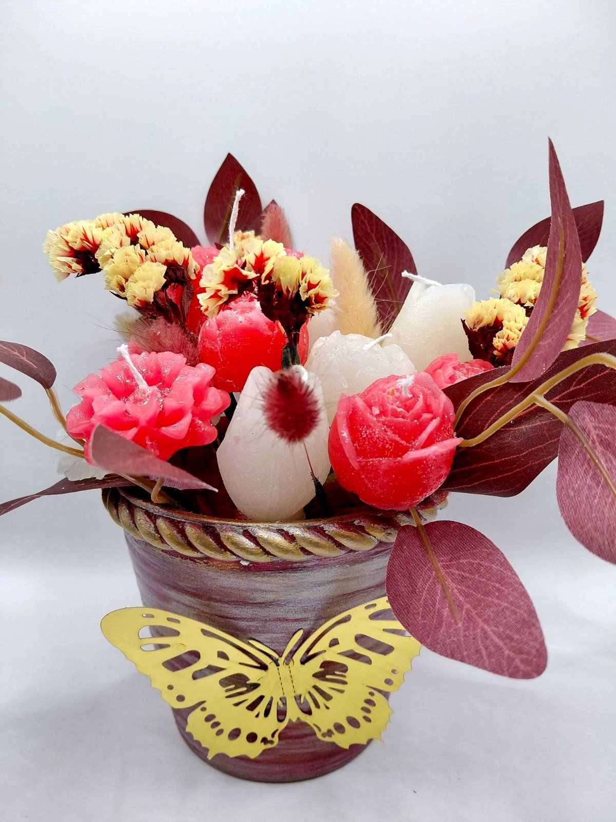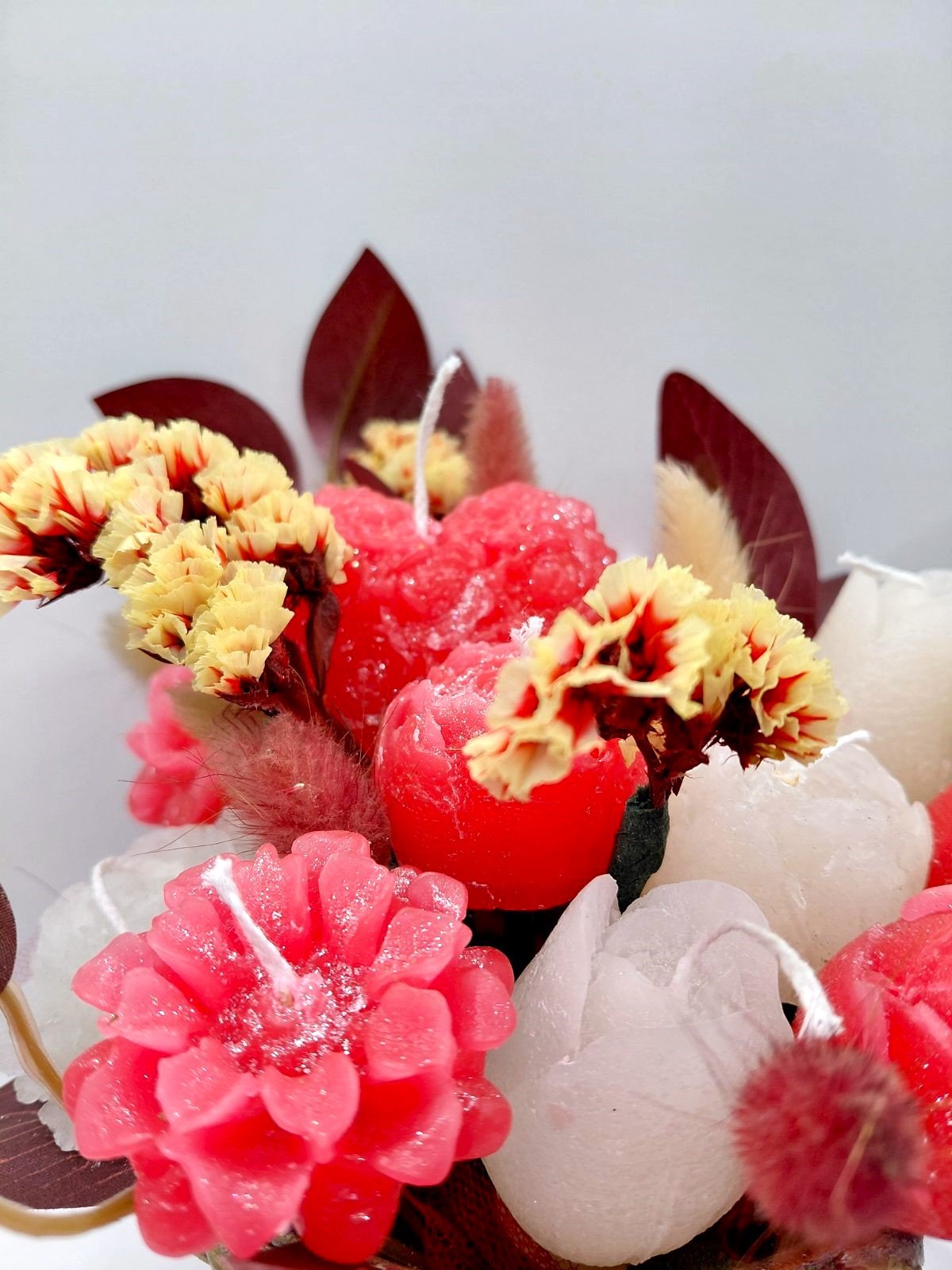 Red Romance – Σύνθεση με Κερένια Λουλούδια & Αποξηραμένα