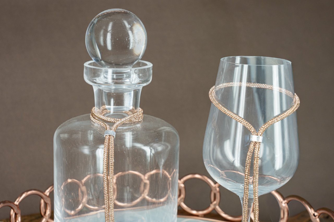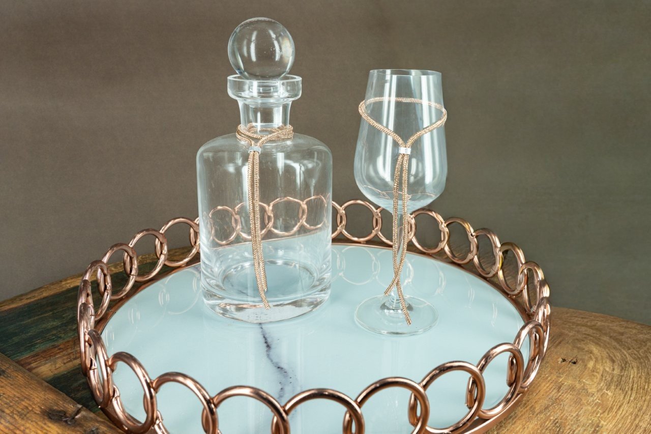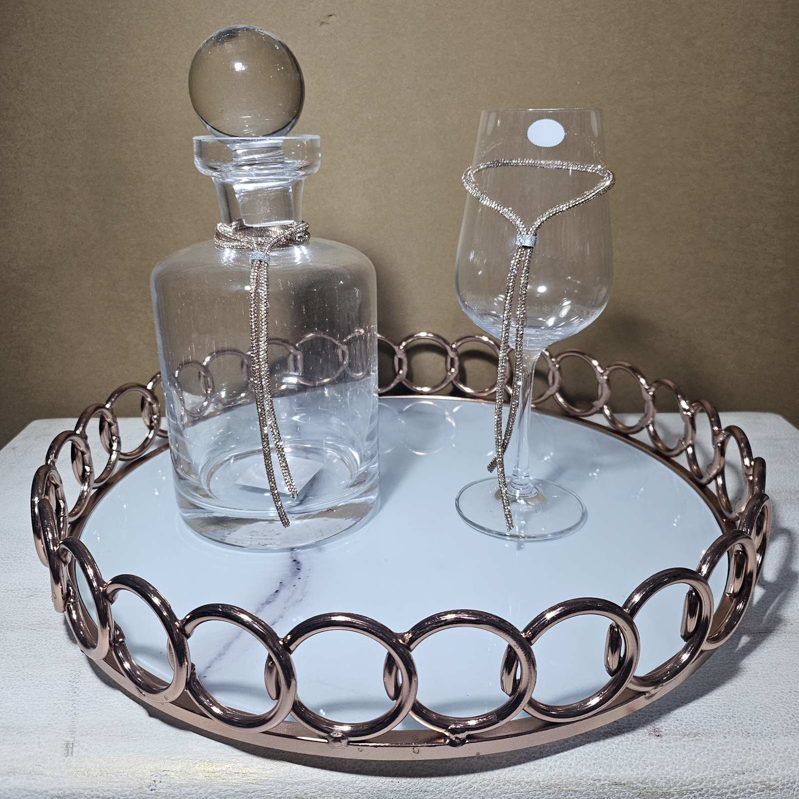 Σετ Καράφα & Ποτήρι σε Στρογγυλό Δίσκο Ροζ Χρυσού