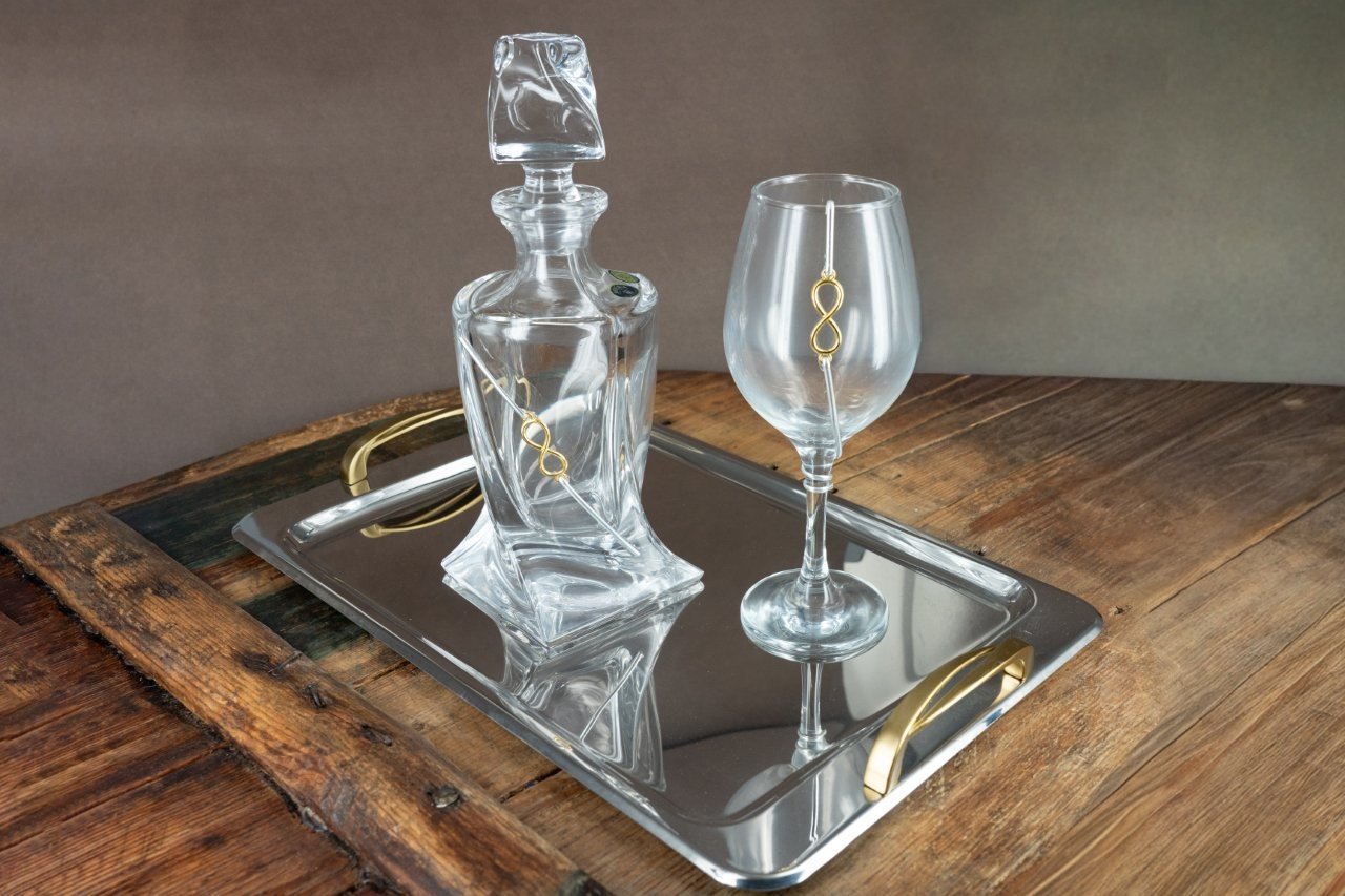 Σετ Γάμου Καράφα & Ποτήρι με Δίσκο – Σχέδιο Απείρου