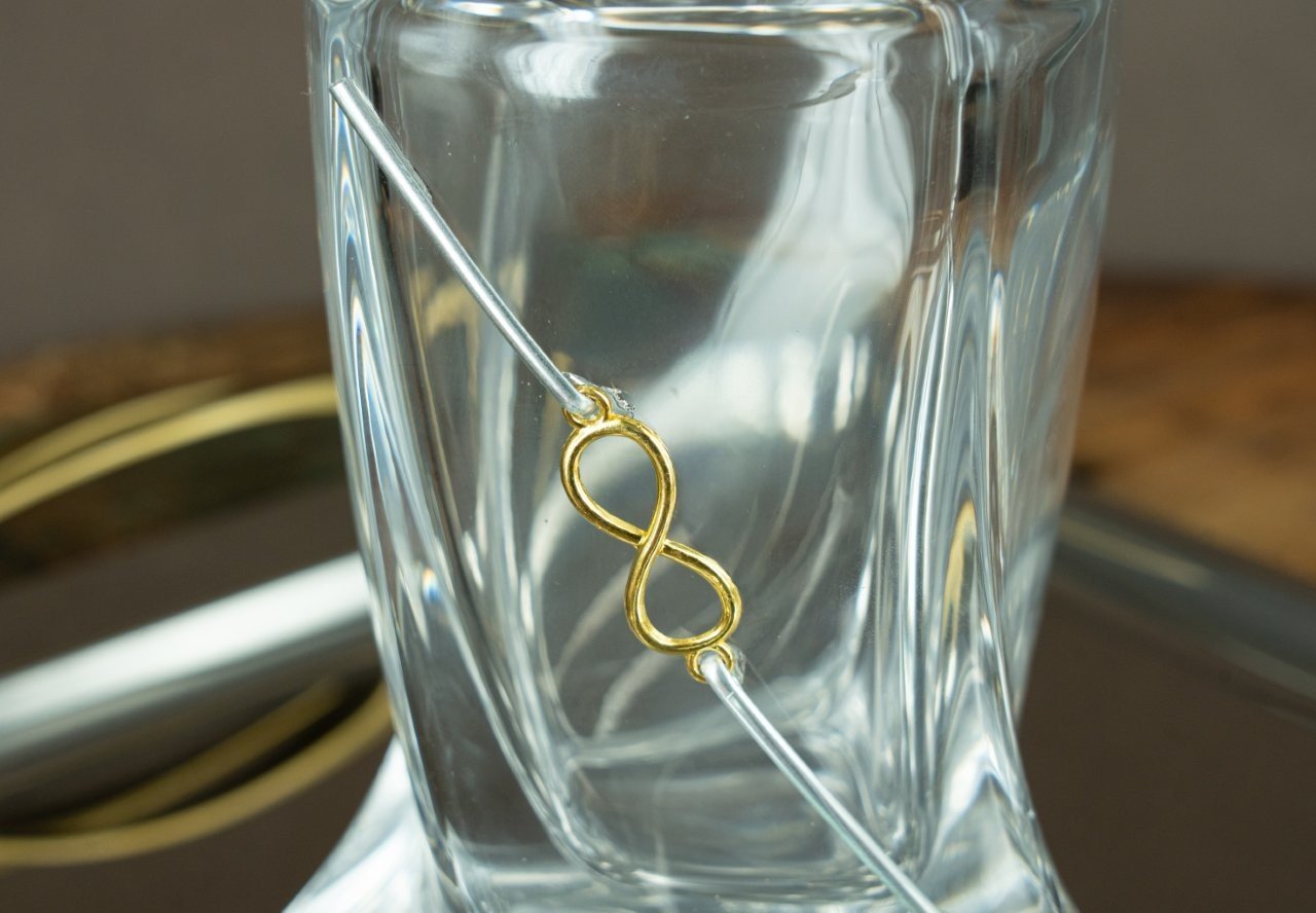 Ολοκληρωμένο σετ γάμου. Περιλαμβάνει επάργυρο δίσκο με ιδιαίτερα χερούλια σε ξύλο και χρυσό(60,00),και καράφα και ποτήρι κρασιού με το άπειρο(95,00).