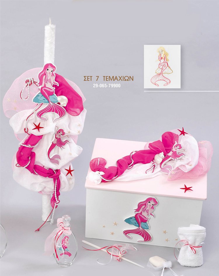 Φέρτε τη μαγεία της θάλασσας στη βάπτιση της μικρής σας με το εντυπωσιακό πακέτο βάπτισης Γοργόνα. Με φούξια και ροζ αποχρώσεις, παιχνιδιάρικα τούλια και ρομαντικές λεπτομέρειες, είναι η τέλεια επιλογή για μια παραμυθένια τελετή.
