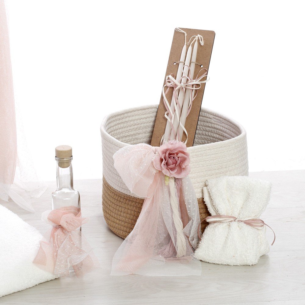 Δώστε προσωπικό χαρακτήρα στη βάπτιση του παιδιού σας με το ξεχωριστό πακέτο βάπτισης με μονόγραμμα. Κομψό, ρομαντικό και χειροποίητο, συνδυάζει φυσικά υλικά με ροζ και μπεζ λεπτομέρειες, δημιουργώντας ένα αποτέλεσμα που θα εντυπωσιάσει.