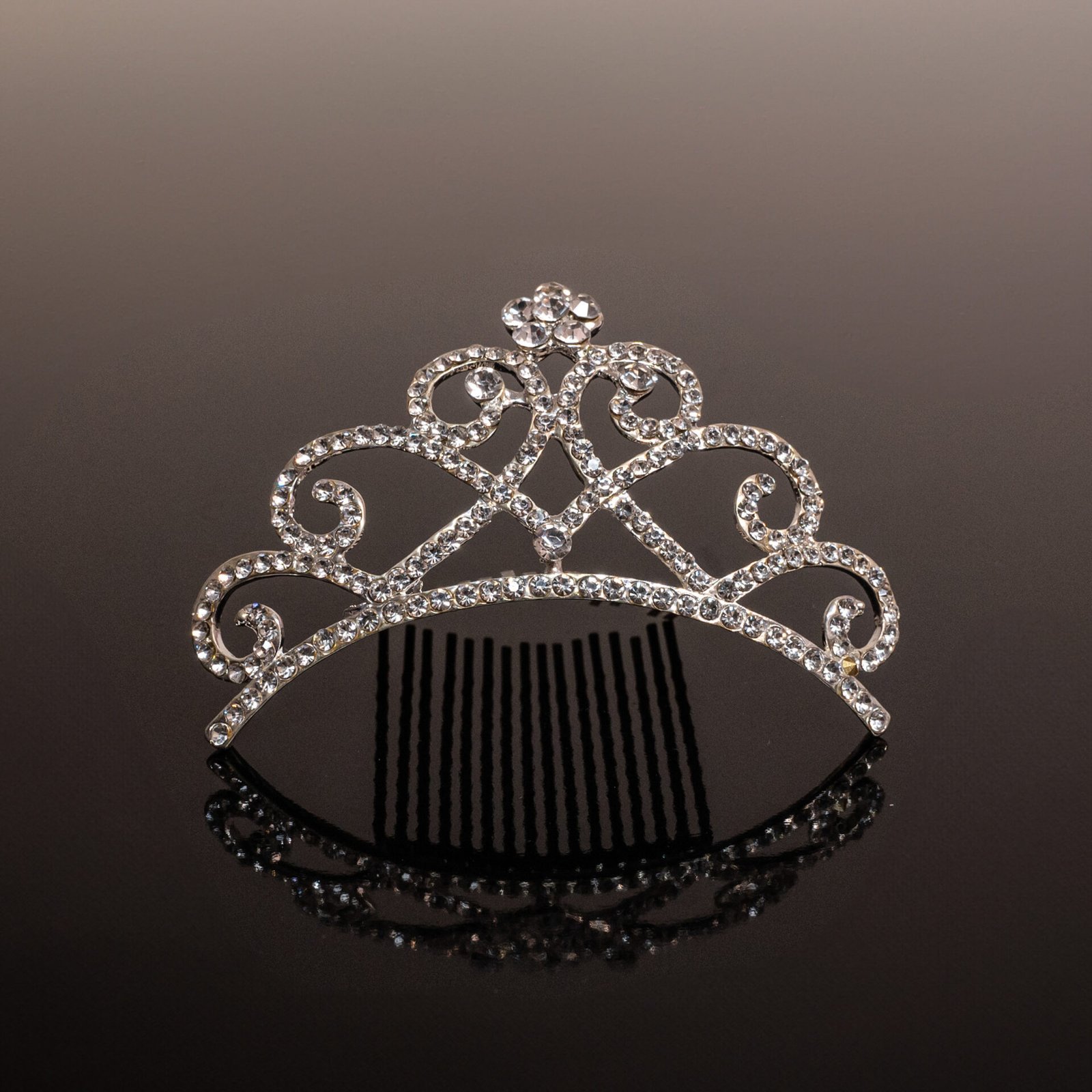 Νυφική Τιάρα Χτένα Ασημί με Κρύσταλλα