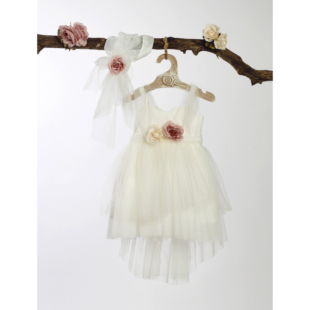 Belle Époque – Εκρού Φόρεμα Βάπτισης με Τούλι & Roses