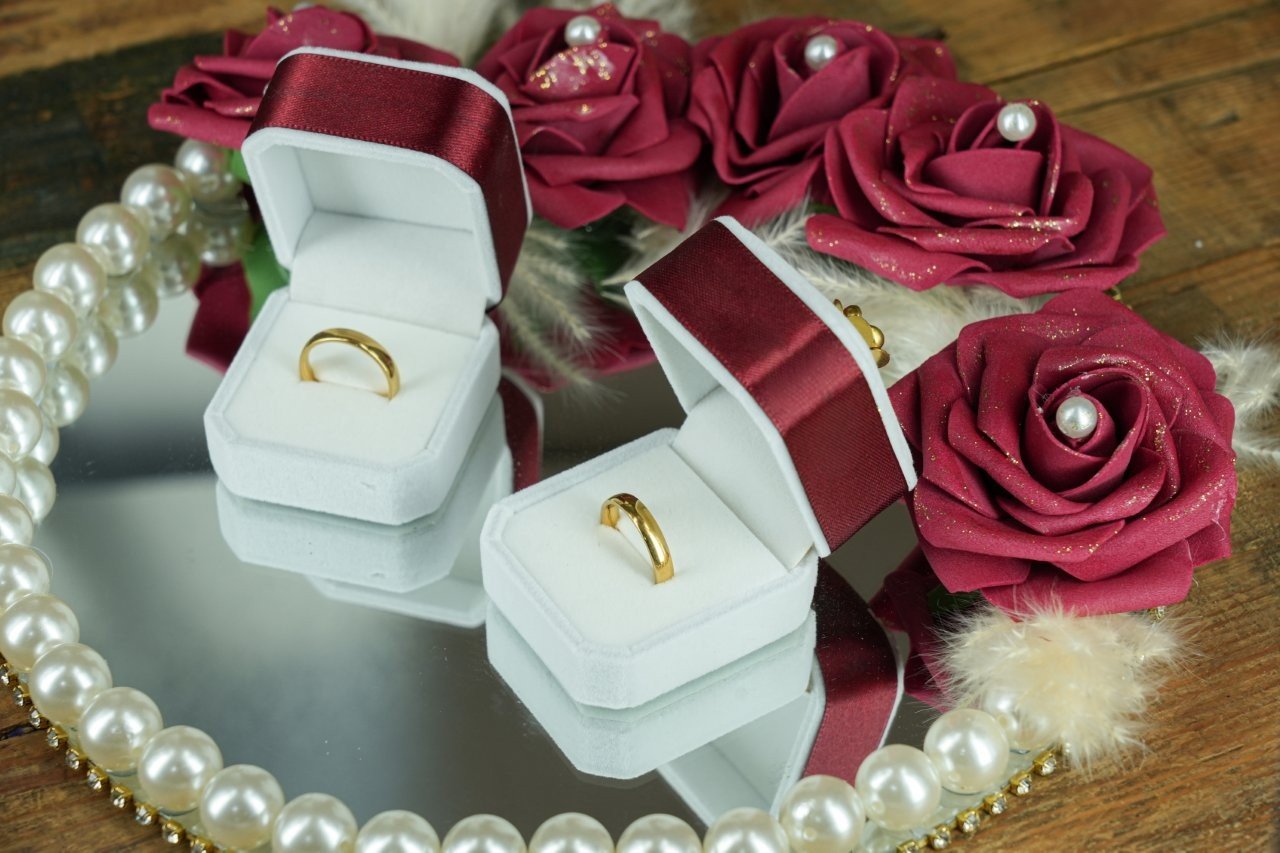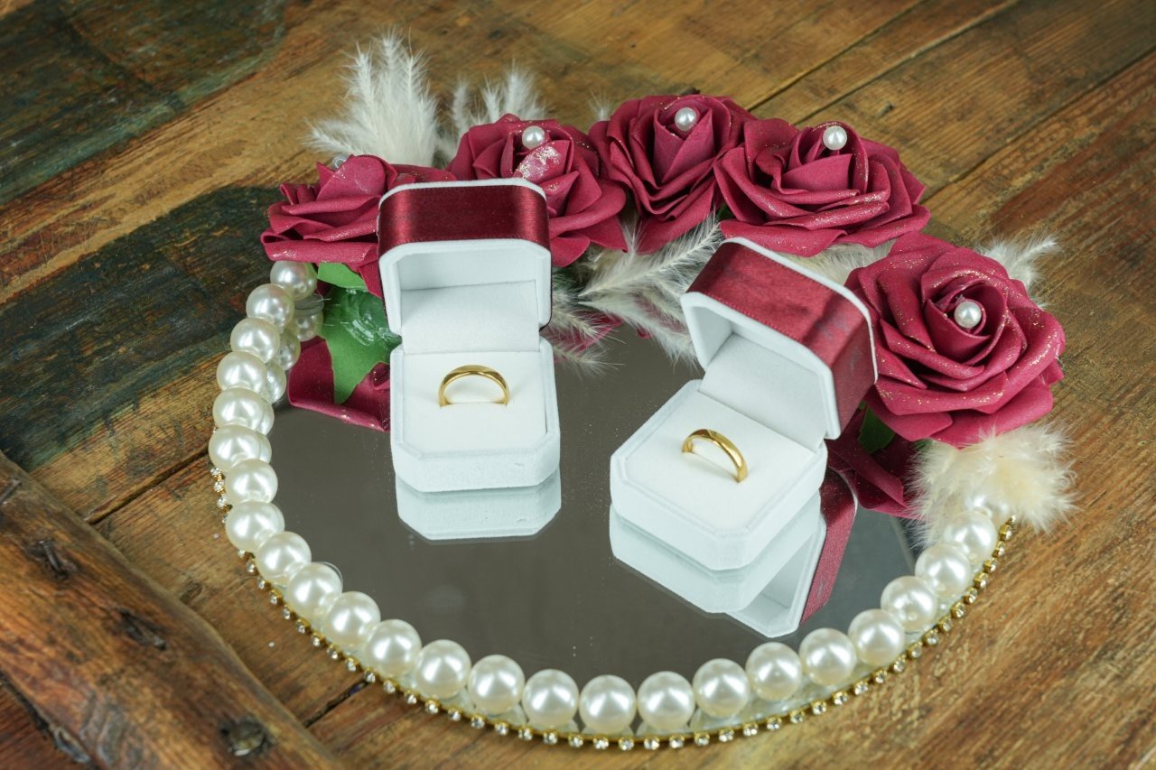 Κομψή βεροθήκη με ρομαντική διακόσμηση από τριαντάφυλλα και πέρλες, ιδανική για να αναδείξει τις βέρες σας στην πιο ξεχωριστή στιγμή του γάμου σας. Ένα όμορφο ενθύμιο που μένει για πάντα.