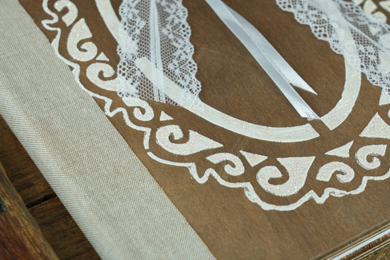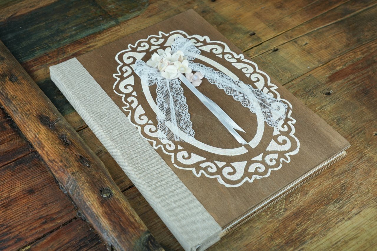 Βιβλίο Ευχών Γάμου Ξύλινο με Δαντέλα & Λουλούδια
